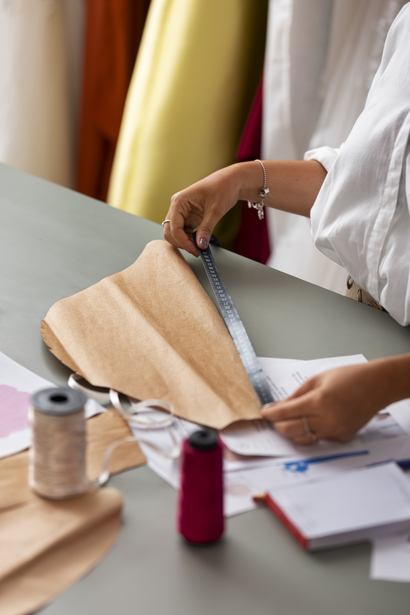 At The Soulful Salon, we believe that the fabric is the heart of every garment, which is why we offer a carefully curated selection of luxurious materials to bring your vision to life. From soft silks and elegant satins to unique organic fabrics, each textile is handpicked for its quality, texture, and ability to complement your design. Our expert team guides you through the process of selecting the perfect fabric, considering factors such as comfort, durability, and the desired aesthetic. Whether you're aiming for a classic look or a more contemporary style, our diverse fabric options ensure that every piece is one-of-a-kind and perfectly suited to your personal taste.